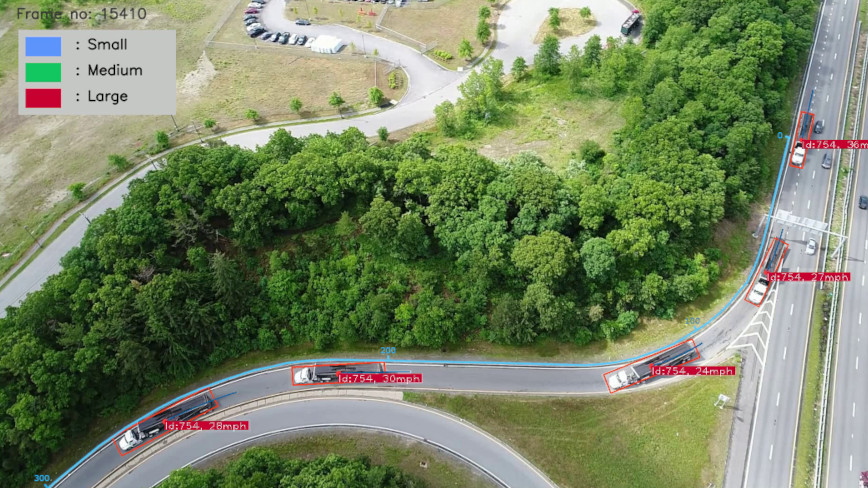 Traditional tracking algorithms are typically tailored for horizontal bounding boxes, posing a challenge for scenarios requiring orientation-aware tracking, such as ours with Oriented Bounding Boxes (OBB). Our specific video data characteristics, lacking abrupt occlusions or random object disappearances, allowed us to design a minimal and efficient tracking algorithm tailored to our needs. This algorithm relies on the intersection-over-union ratio of a given vehicle in consecutive frames to ensure accurate and effective tracking.